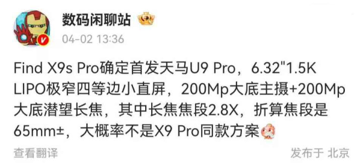 日前,OPPO Find 系列家具认真东谈主 @OPPO卓世杰 合手续对OPPO Find X9 Ultra和X9s Pro进行官宣,阐发该机将首发第二代丹霞色调复原镜头,同期,其还晒出了样张对比照,并详解了其中互异。此外,罕有码博主也曝光了OPPO Find X9s Pro的更多信息,表示该机还将首发天马U9 Pro极窄四等边小直屏。