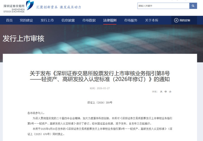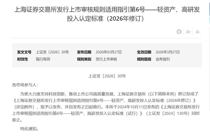 3月27日,沪深往复所窜改发布实行股票刊行上市审核指引——轻金钱、高研发干与认定圭臬(2026年窜改)(简称《轻金钱、高研发干与指引》),将“轻金钱、高研发干与”认定圭臬适用边界拓展至主板公司。窜改后,适合圭臬的主板公司再融资补流不错自便名额用于研发干与,进一步提高再融资活泼性。