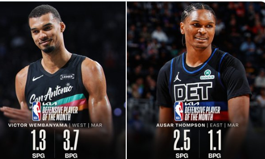 HG官网(HoGaming) NBA官方公布三月最好小心球员: 西部文班亚马, 东部汤普森
