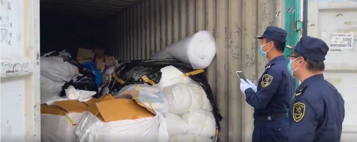 近日,青岛海关查获沿途私运洋垃圾进境案。